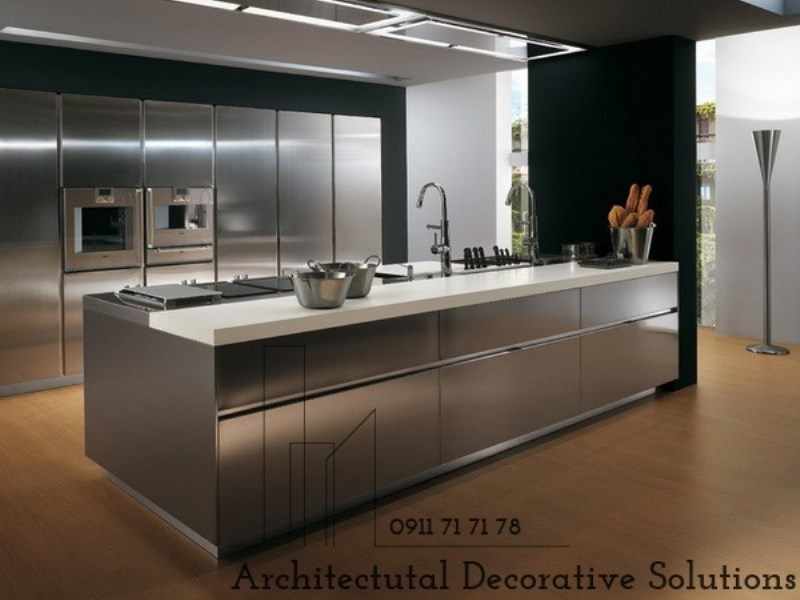 Nhà bếp của bạn sẽ mang đậm phong cách hiện đại với thiết kế tủ bếp bằng thép không gỉ với nhiều ưu điểm lớn. Vật liệu này dễ dàng làm sạch, có độ phản sáng cao nên tạo cảm giác sáng sủa và có độ bền cao. Nếu bạn không đủ tiền để sắm tủ thép không gỉ thì bạn có thể lựa chọn tủ gỗ công nghiệp MDF được phủ lớp thép bên ngoài. Tuy nhiên, tủ bếp bằng thép không gỉ cũng có một số nhược điểm khá rõ ràng: có thể để lại dấu vân tay và dễ bị trầy xước. Dù vậy, một số nhà sản xuất cam kết rằng sản phẩm cao cấp của họ có thể chống lại những điều khó chịu đó.