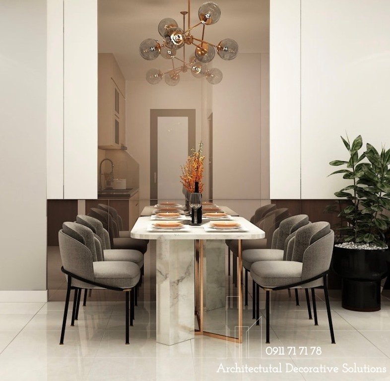 - Kiểu dáng và màu sắc: Bàn ăn nên có tổng thể thống nhất từ kiểu dáng đến màu sắc để thể hiện sự tinh tế, tính thẩm mỹ của gia chủ.
