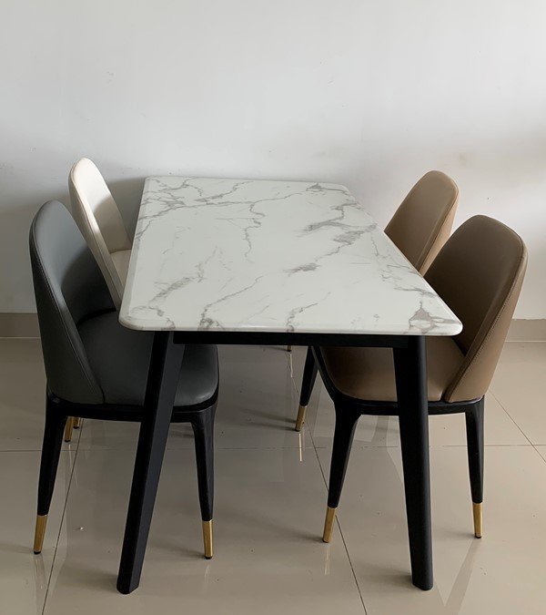 Chất Liệu : bàn chân gỗ tự nhiên, mặt đá trắng vân.