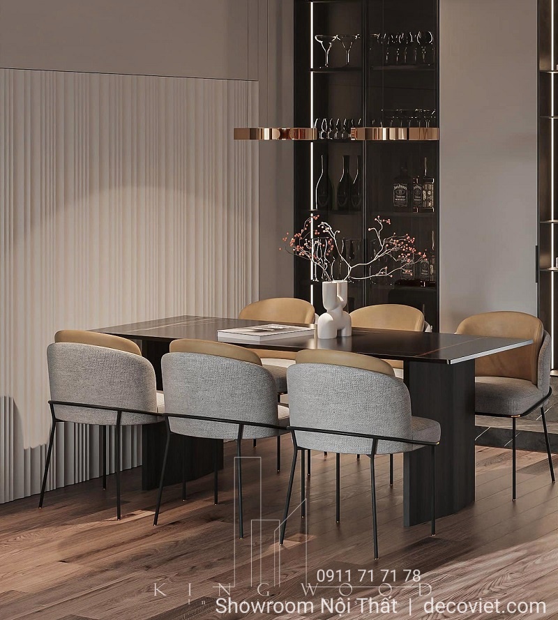 Những thiết kế bàn ăn 6 người phong cách hiện đại luôn được yêu thích và ưu tiên lựa chọn hàng đầu hiện nay vì mang đến sự độc đáo, mới lạ và tinh tế cho không gian sống. Các chất liệu mặt đá, chân sắt được kết nối hài hòa, mang đến sự ấn tượng mạnh mẽ ngay từ cái nhìn đầu tiên.