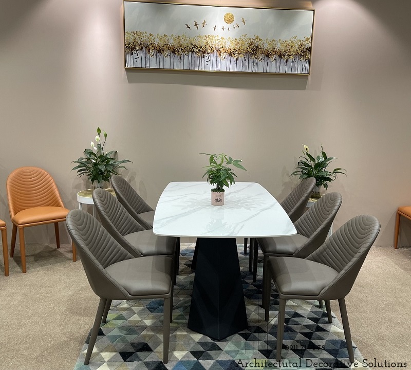 Là một trong những mẫu bàn ăn đẹp được yêu thích nhất tại DecoViet, Bàn Ăn Mặt Đá dễ dàng kết hợp hài hòa với các món đồ nội thất trong phòng như thảm trải sàn, ghế ăn, tủ trang trí. Ngoài ra, dáng bàn ăn này còn có thể kết hợp với mặt bàn đá giúp không gian thêm sang trọng và tinh tế hơn.