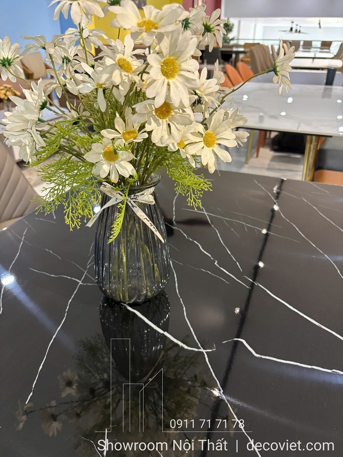 Bàn Ăn 6 Ghế Mặt Đá Chân Gỗ 2790S là lựa chọn lý tưởng cho những gia đình đang tìm một mẫu bàn ghế ăn đẹp, bền và có mức giá dễ tiếp cận. Thiết kế nổi bật với mặt bàn đá đen vân sang trọng, độ cứng cao, chống thấm ố tốt và rất dễ vệ sinh sau mỗi bữa ăn. Chân bàn gỗ chắc chắn mang đến sự ổn định, sử dụng lâu dài mà vẫn giữ được vẻ đẹp như mới.