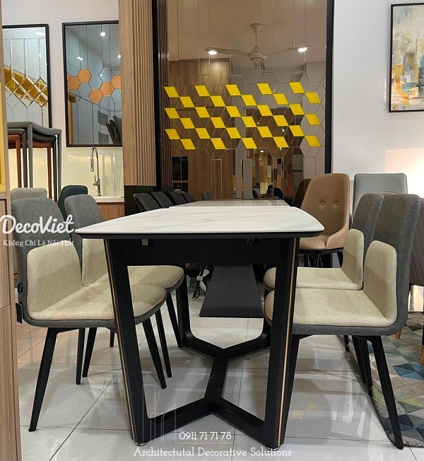 Bàn Ăn Cao Cấp 377S là một món đồ nội thất không thể thiếu trong gian bếp của mỗi gia đình Việt. Đến với DecoViet bạn sẽ được tư vấn lựa chọn bộ bàn ghế ăn gia đình với nhiều kích thước, đa dạng về phong cách, phong phú về chất liệu phù hợp với ngôi nhà của bạn. Tự hào là một trong những nhà bán lẻ hàng đầu trong lĩnh vực nội thất trong nước, chúng tôi luôn mang đến cho khách hàng những bộ bàn ăn tốt nhất, cho bạn nhiều sự lựa chọn, từ đồ gỗ đến kim loại, mặt đá đẹp với các mẫu bàn ghế ăn nổi tiếng hàng đầu.