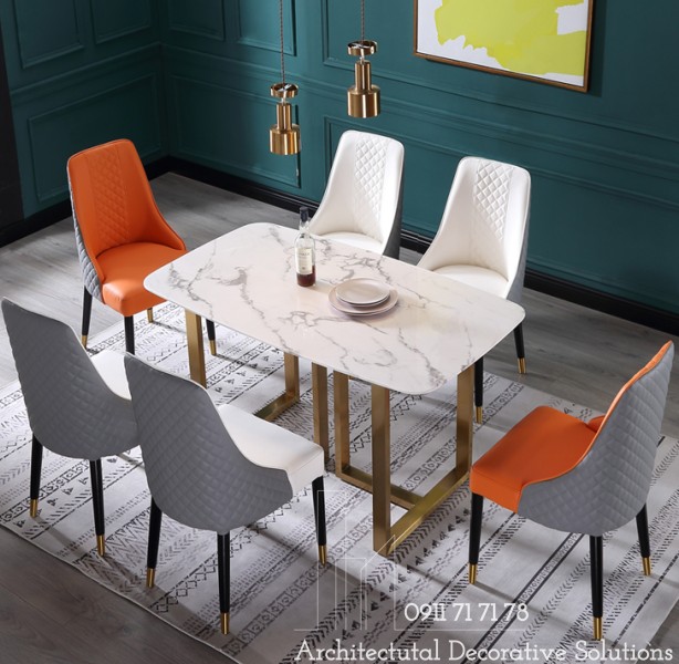 Chất Liệu : chân inox mặt đá trắng vân, ghế bọc da