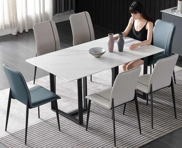 Chất Liệu : chân sắt sơn đen mặt đá trắng vân.