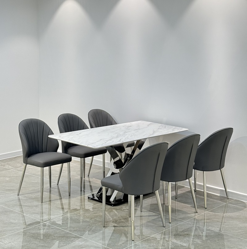 Bàn Ăn Hiện Đại Chân Inox 6 Ghế 2789S