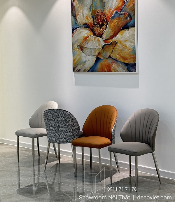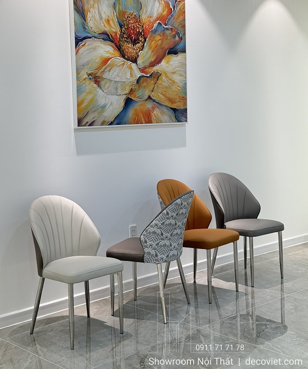 Mẫu ghế ăn hiện đại chân inox sẽ đảm bảo độ bền lâu dài, chịu lực tốt và không hoen gỉ. Đường cong lưng ghế được tính toán theo thiết kế công thái học, giúp nâng đỡ lưng và giảm mỏi khi ngồi lâu.