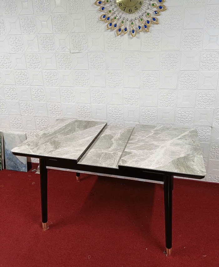 Bàn Ăn Kéo Dài Cho Nhà Nhỏ 2720S sở hữu mặt bàn bằng đá ceramic cao cấp – chất liệu nổi bật nhờ độ cứng vượt trội, khả năng chống trầy xước, chống thấm và dễ dàng vệ sinh. Vân đá tự nhiên kết hợp cùng tông màu hiện đại mang đến vẻ đẹp thanh lịch, góp phần làm bừng sáng không gian phòng ăn và nâng tầm phong cách sống của gia đình bạn.