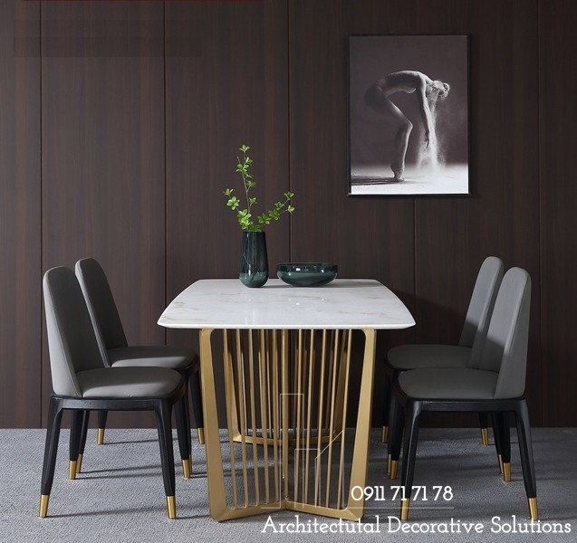 Chất Liệu : bàn inox mạ vàng mặt đá trắng vân.