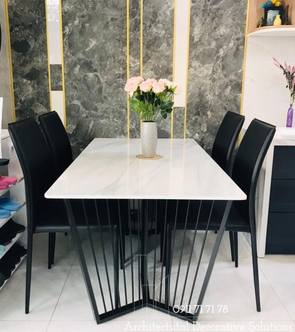 Chất Liệu : chân sắt sơn đen mặt đá trắng vân