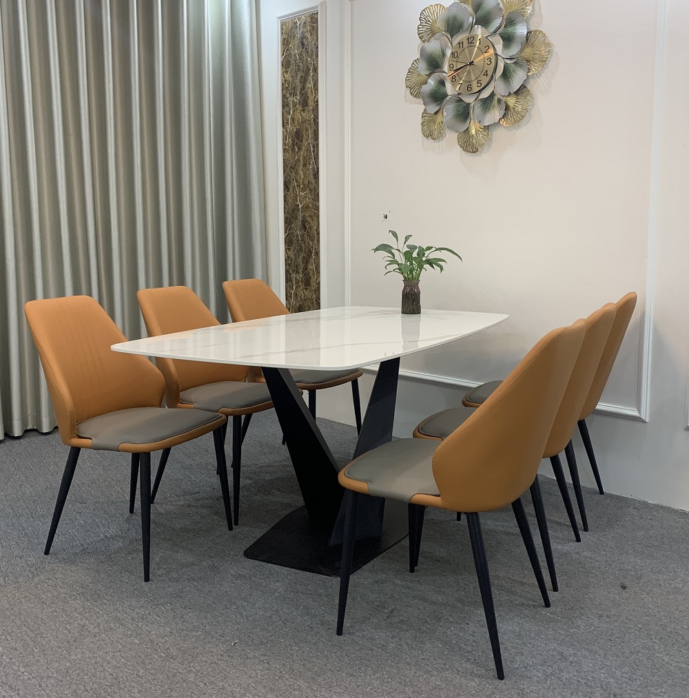 Đây cũng là một trong những sản phẩm luôn nhận được phản hồi tốt nhất của khách hàng sau khi sử dụng. Bộ bàn ăn với chân sắt, mặt đá nhập, và 6 ghế nệm cao cấp chắc chắn sẽ làm quý khách hài lòng.