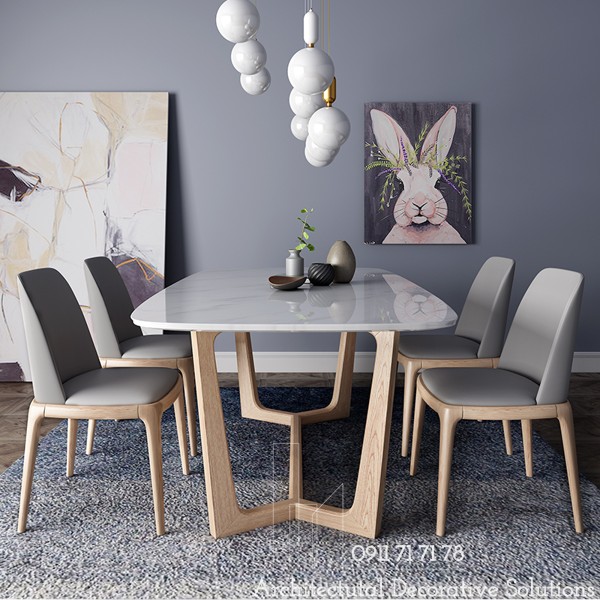 Chất Liệu : 4 ghế bọc nệm, Chân bàn gỗ tự nhiên, mặt đá trắng vân.
