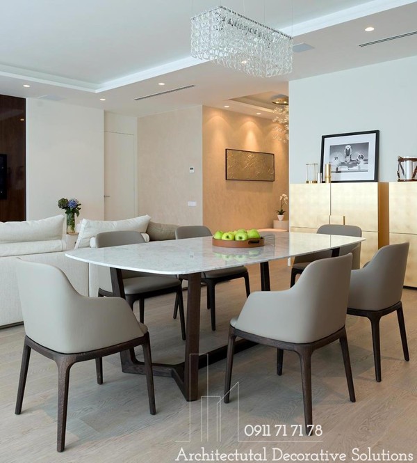 Chất Liệu : 6 ghế bọc nệm, Chân gỗ tự nhiên mặt đá đen.