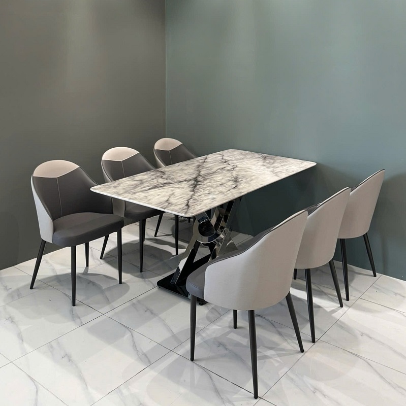 Một phòng ăn đẹp chưa chắc đã cần nhiều đồ nội thất, nhưng nhất định phải có một bộ bàn ghế ăn "đúng gu". Và Bàn Ăn Mặt Đá Tự Nhiên 6 Ghế 2711S chính là mảnh ghép hoàn hảo cho không gian ấy. Thiết kế hiện đại, mặt bàn đá cẩm thạch tự nhiên bền bỉ kết hợp ghế bọc da cao cấp êm ái, cùng phần khung chân sáng tạo, tạo nên tổng thể sang trọng, tinh tế. Không chỉ là nơi thưởng thức bữa ăn, bộ bàn ăn 6 người cao cấp còn mang lại sự ấm áp, gắn kết và nâng tầm đẳng cấp cho phòng bếp gia đình.