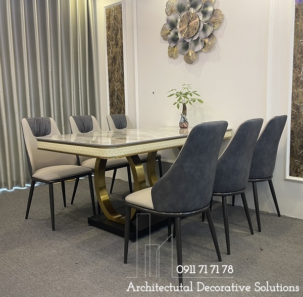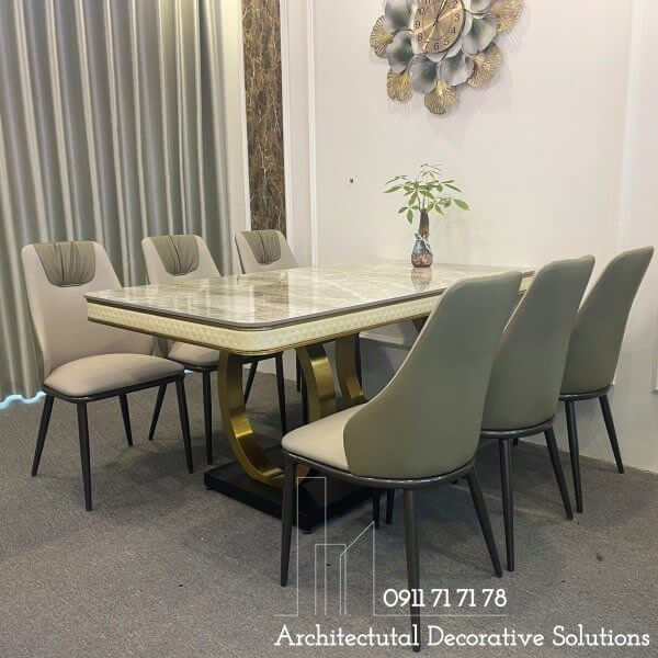 Bộ bàn ăn mặt đá chữ nhật sang trọng, kết hợp cùng bộ 6 ghế ăn cao cấp sẽ là điểm nhấn hoàn hảo cho căn bếp nhà bạn.