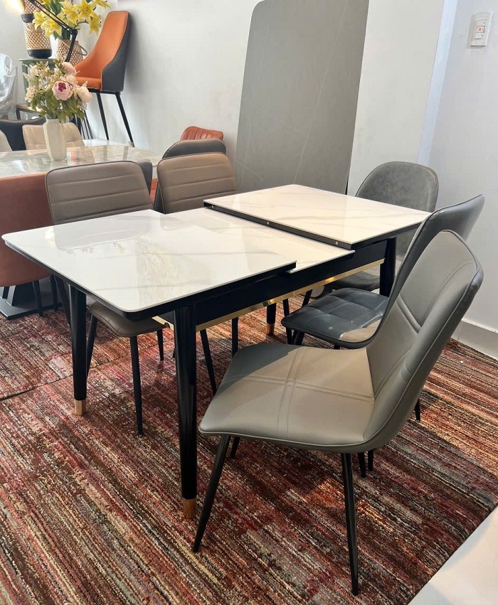 Chỉ với vài thao tác nhẹ nhàng, chiếc bàn có thể mở rộng từ 1.1m thành 1.4m, dễ dàng đáp ứng các nhu cầu sử dụng khác nhau. Dùng gọn gàng cho 2-4 người mỗi ngày, hoặc mở rộng để tiếp đãi lên đến 6 khách trong những dịp đặc biệt – tất cả đều trở nên tiện lợi và thoải mái. Đây là lựa chọn lý tưởng cho những ai đề cao sự linh hoạt và tiết kiệm không gian.