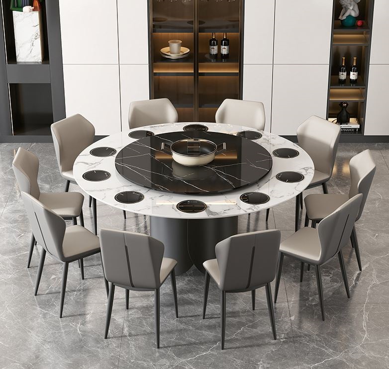 Nếu bạn đang tìm kiếm một bộ bàn ghế ăn thể hiện gu thẩm mỹ tinh tế và phong cách sống thượng lưu, thì Bàn Ăn Tròn Thông Minh 10 Ghế 2749S chính là lựa chọn hoàn hảo. Thiết kế ấn tượng với mặt đá cao cấp sang trọng, bề mặt bóng mịn, chống trầy xước – chống thấm – dễ vệ sinh, mang lại vẻ đẹp bền vững theo thời gian. Không chỉ là nơi dùng bữa, chiếc bàn ăn tròn xoay này còn là tâm điểm kết nối cho những bữa tiệc đông thành viên. Dành riêng cho Không gian biệt thự, villa hay phòng VIP nhà hàng trở nên đẳng cấp, tiện nghi và đầy cảm hứng – xứng tầm với phong cách sống của gia chủ hiện đại.