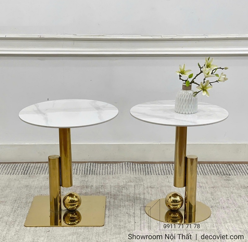 Bàn Decor Cao Cấp 1267S sở hữu thiết kế độc đáo với mặt bàn tròn nhỏ gọn, được làm từ mặt đá chống thấm ố và dễ vệ sinh. Kết hợp cùng chân inox mạ vàng sang trọng, sản phẩm mang đến vẻ đẹp sang trọng, hiện đại và vô cùng cuốn hút. Bố cục bàn tab decor tối giản nhưng vẫn tạo điểm nhấn nhờ quả cầu nhỏ trang trí dưới chân bàn – chi tiết thể hiện sự cân bằng tinh tế giữa hình khối và thẩm mỹ.