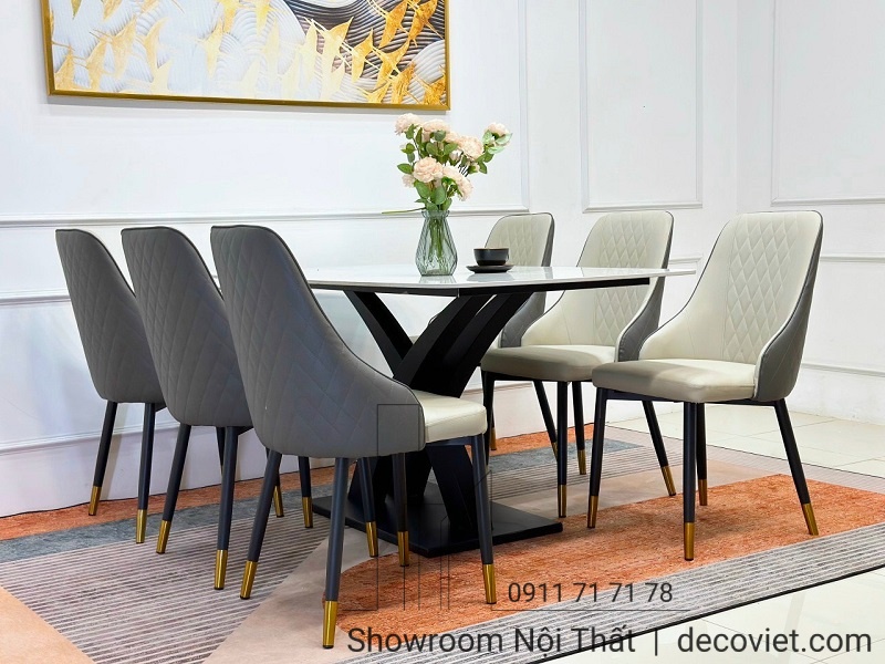 Bộ bàn ghế ăn không chỉ mang đến cảm giác thoải mái khi dùng bữa mà còn giúp tô điểm không gian nhà bạn thêm sang trọng và tinh tế. Sẽ thật sự thiếu sót nếu phòng bếp nhà bạn thiếu đi những bộ bàn ăn giá rẻ đẹp mắt và thu hút. Bàn Ghế Ăn Đẹp Giá Rẻ 935S là một trong những bộ bàn ăn 6 ghế nổi bật, mang tinh thần hiện đại và tinh tế, được đông đảo quý khách hàng yêu thích bởi có độ bền lâu dài từ sự kết hợp của những chất liệu cao cấp. Mặt đá bàn ăn với những đường vân khác biệt, chân sắt sơn kiểu dáng độc đáo sẽ là lựa chọn khó có thể bỏ qua cho căn bếp nhà bạn.