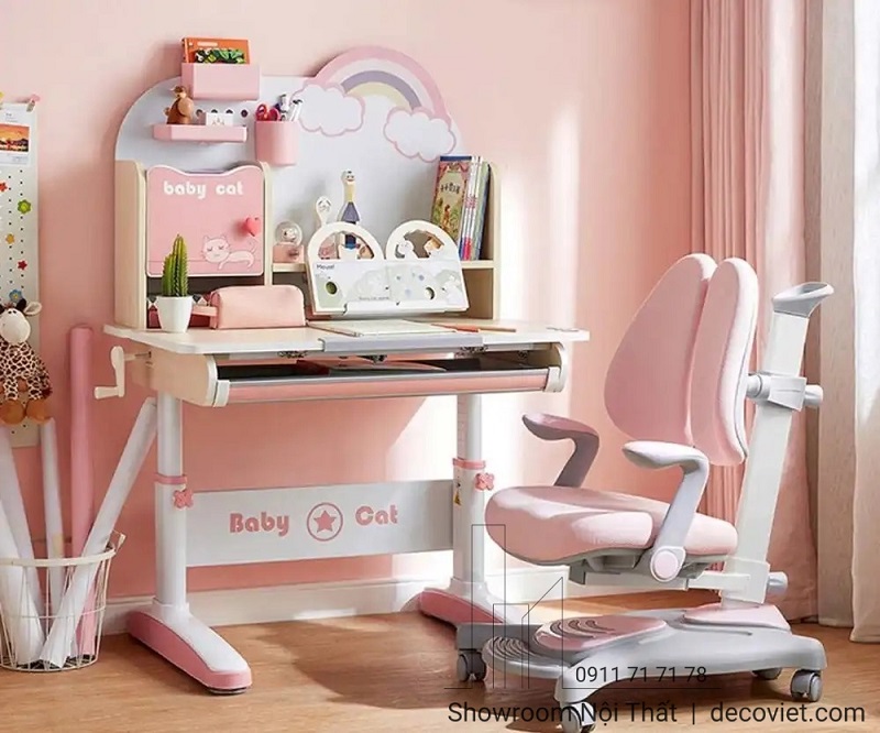 Tại DecoViet, chúng tôi mang đến các mẫu bàn học sinh thông minh, bàn học tiểu học điều chỉnh chiều cao, ghế học sinh chống gù và bàn học sinh liền giá sách – được nghiên cứu kỹ lưỡng theo từng độ tuổi và thể trạng của trẻ em. Từ những mẫu bàn học sinh lớp 1 dễ thương, màu sắc sinh động cho đến bàn học sinh sinh viên hiện đại, nhỏ gọn, mỗi sản phẩm đều hướng tới mục tiêu chung: giúp bé học tập hiệu quả, ngồi đúng tư thế và phát triển toàn diện mỗi ngày. Đặc biệt, mỗi mẫu bàn ghế ngồi học đều được thiết kế tinh tế, bo tròn an toàn và sử dụng chất liệu thân thiện với sức khỏe, mang đến cho bé cảm giác thoải mái trong suốt quá trình học tập. Với DecoViet, không chỉ là chọn bàn học – mà là chọn nền tảng vững chắc cho tương lai của con.