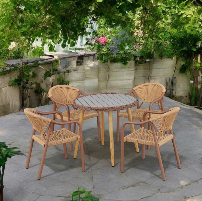 Bàn Ghế Sân Vườn Giả Gỗ 4 Người 2089T Thiết Kế Tinh Tế!