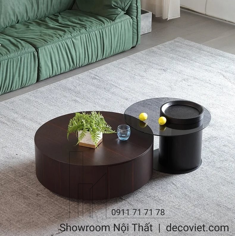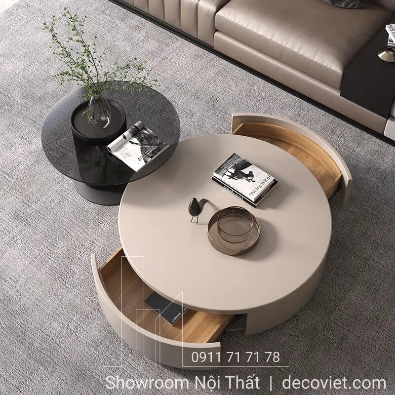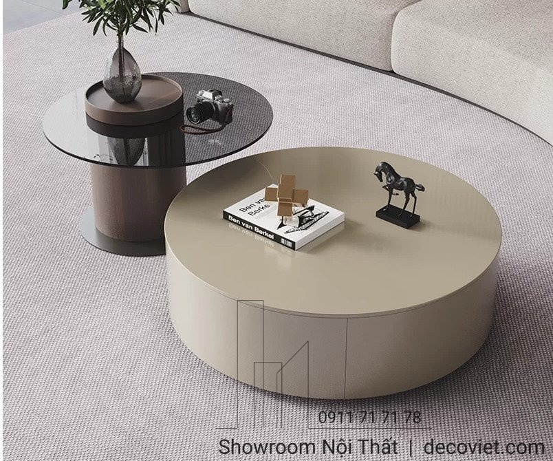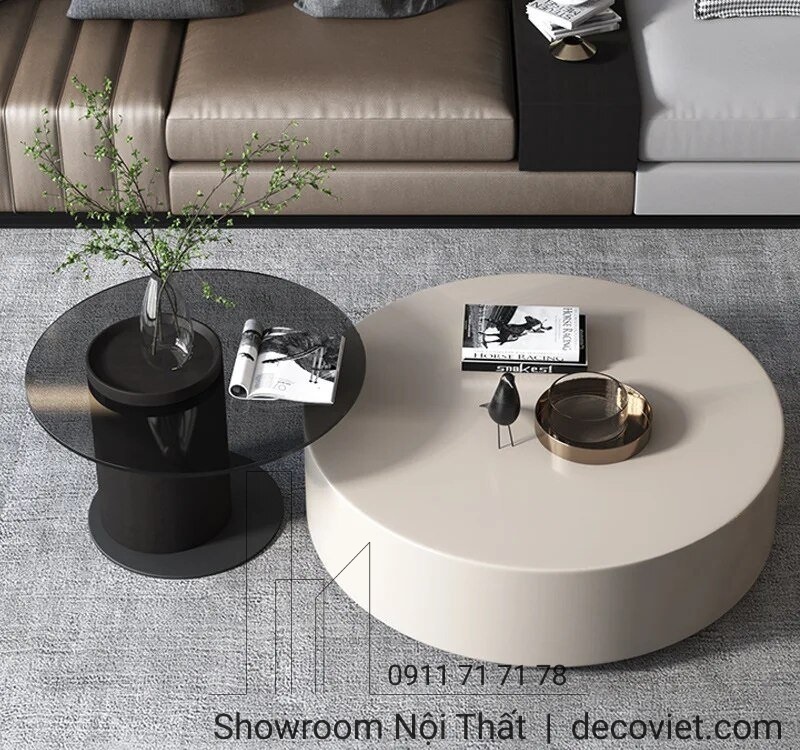 + Kiểu dáng thiết kế: Mẫu bàn trà tròn đôi thiết kế hiện đại gồm 1 bàn lớn và 1 bàn nhỏ khác nhau về chiều cao, phù hợp với đa dạng các dòng ghế sofa phòng khách nhưng phù hợp nhất vẫn là các mẫu ghế sofa băng, sofa bộ hoặc sofa góc chữ L. Thiết kế bàn sofa giá rẻ còn tích hợp hộc tủ nhỏ xinh, giúp bạn có thể cất giữ đồ vật một cách dễ dàng và tiện nghi.