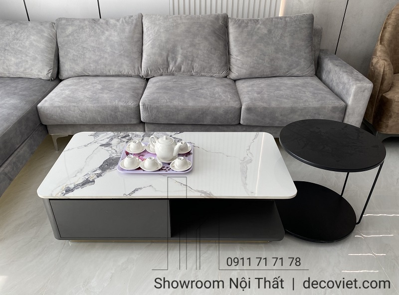 Bàn Sofa Mặt Đá Đẹp 314S này có thiết kế tiện nghi khi được trang bị hộc tủ rộng rãi để bạn có thể cất giữ những vật dụng như tạp chí, remote,... Bàn sofa mặt đá đẹp sẽ phù hợp với nhiều phong cách nội thất khác nhau, đặc biệt là những phòng khách nhà phố, chung cư, biệt thự theo đuổi phong cách hiện đại.