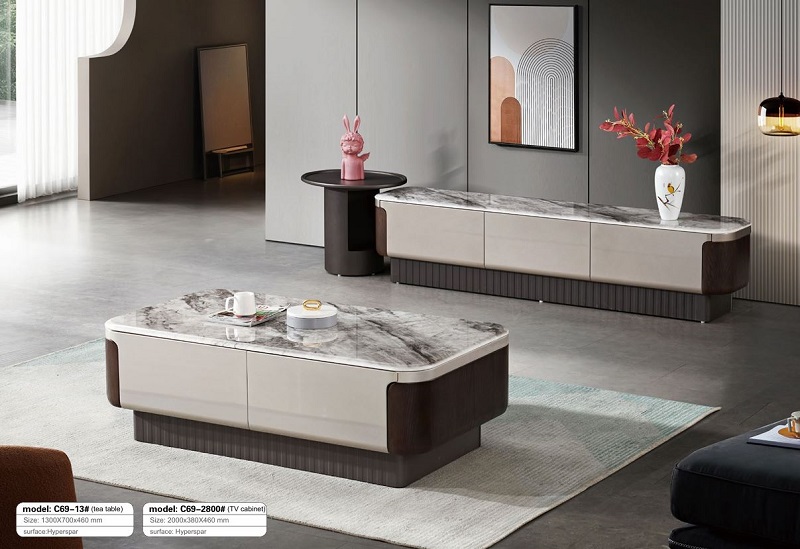 Một phòng khách đẹp không thể thiếu một chiếc bàn trà sang trọng và hài hòa với bộ sofa. Mẫu Bàn Trà Hiện Đại Nhập Khẩu 70T được DecoViet giới thiệu dưới đây là lựa chọn lý tưởng cho những ai yêu thích phong cách hiện đại, tinh tế và đề cao sự tiện nghi. Thiết kế bàn chữ nhật truyền thống nhưng được cách điệu bằng đường bo cong mềm mại ở các góc, màu sắc nhã nhặn cùng mặt đá vân mây đẳng cấp giúp mẫu bàn trà mặt đá nhập khẩu dễ dàng “ăn nhập” với mọi không gian sống, từ chung cư, nhà phố đến văn phòng chuyên nghiệp.