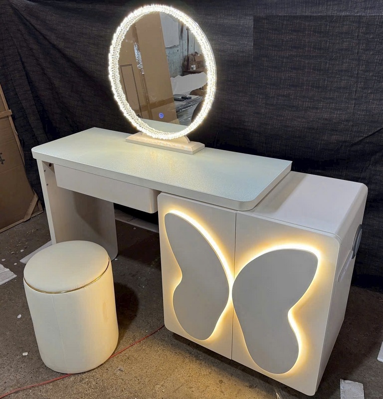 Bàn Trang Điểm Gỗ 152S là lựa chọn hoàn hảo để biến góc nhỏ trong phòng ngủ thành nơi đầy cảm hứng. Thiết kế gương LED viền sáng lung linh vừa giúp nàng make-up chuẩn nét, vừa tạo không gian sang xịn chuẩn xu hướng. Kết hợp cùng tông màu trắng thanh lịch và họa tiết cánh bướm độc đáo, mẫu bàn phấn này chắc chắn sẽ khiến nàng mê từ cái nhìn đầu tiên.