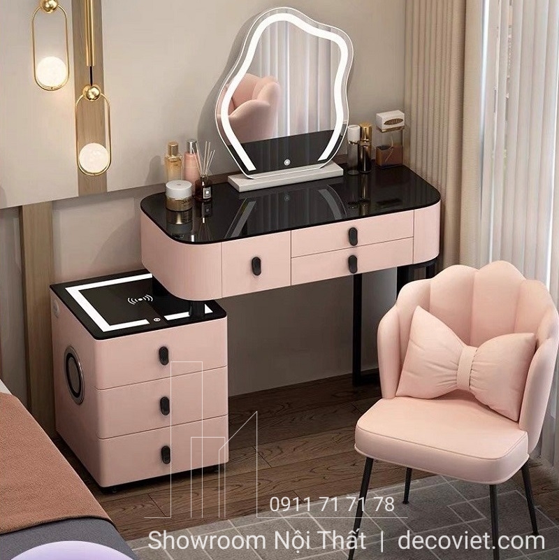 Bàn trang điểm là thứ không thể thiếu đối với các bạn gái. Ngoài việc giúp cho công đoạn làm đẹp dễ dàng hơn, bàn phấn trang điểm còn có tác dụng trang trí phòng và thể hiện gu thẩm mỹ của chủ nhân. Bàn Trang Điểm Thông Minh 50S được sản xuất với các nguyên liệu gỗ cao cấp qua quy trình xử lý chuyên nghiệp nên bàn trang điểm gỗ tự nhiên của DecoViet không cong vênh và mối mọt trong qua trình sử dụng. Thiết kế hiện đại với đa dạng mẫu mã dễ dàng lựa chọn để phù hợp với phong cách thiết kế phòng ngủ của bạn.