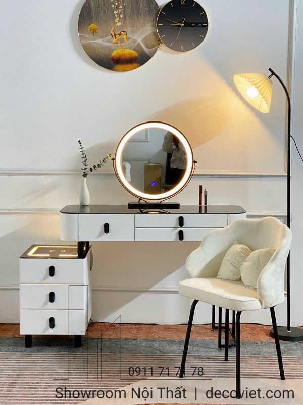 Bàn trang điểm có thiết kế đẹp mắt và sang trọng chắc chắn sẽ là một món quà đặt biệt đối với những cô nàng hiện đại. Liên hệ ngay với DecoViet theo Hotline 0911 71 71 78 để được chúng tôi hỗ trợ bạn nhanh nhất!