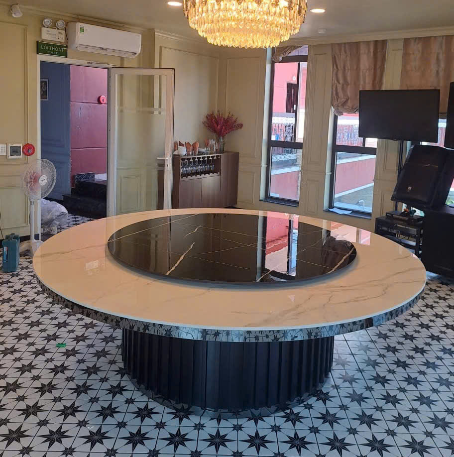 Bàn Tròn Mặt Đá 2m4 Mâm Xoay 2758S không chỉ là nơi thưởng thức bữa cơm ngon, mà còn là “trái tim” của phòng ăn, mang lại sự ấm cúng, hiện đại và đẳng cấp cho ngôi nhà, khách sạn, hội nghị của bạn.