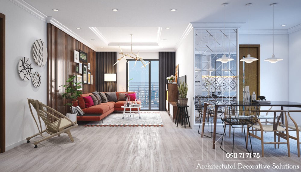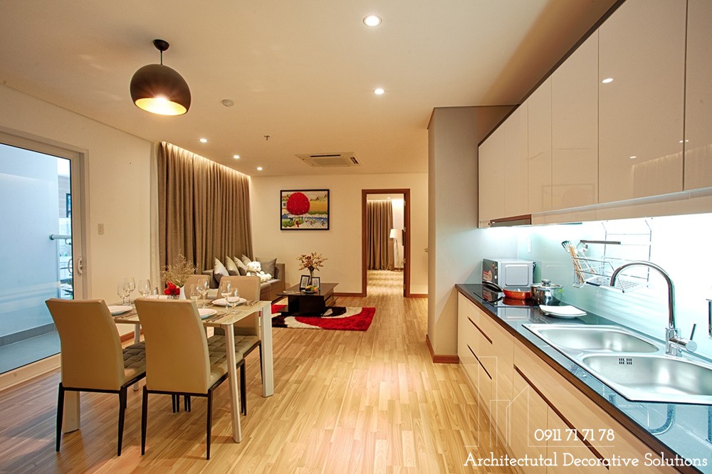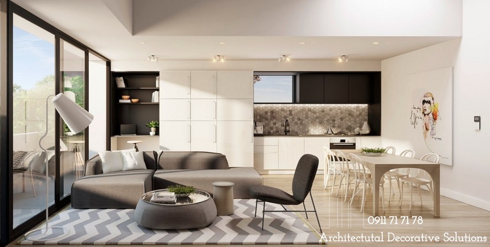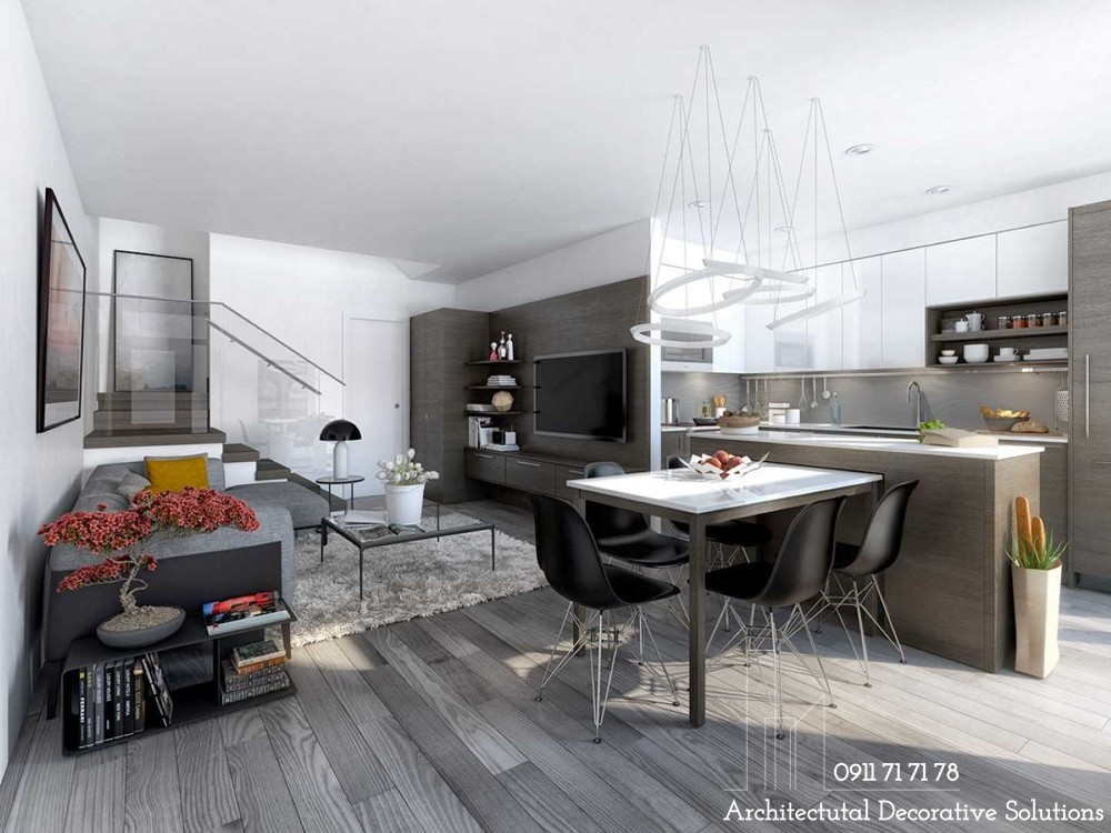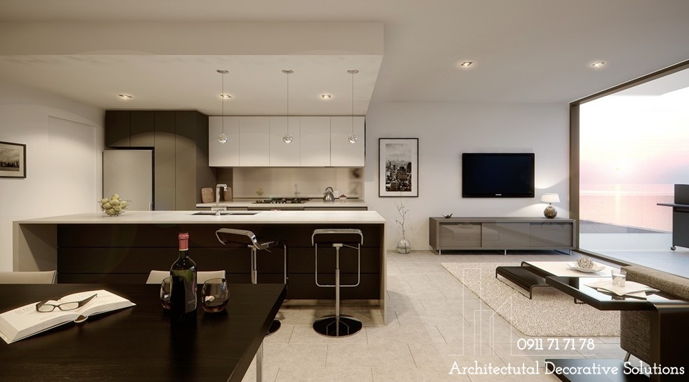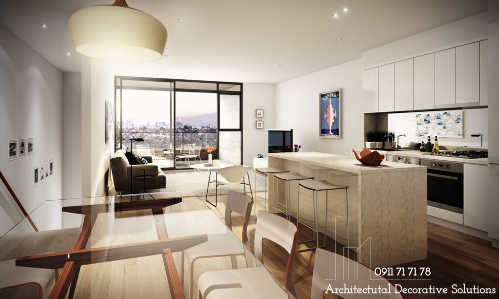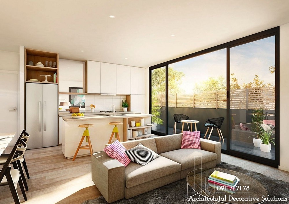 Thiết kế phòng khách và bếp liên thông chung cư đẹp