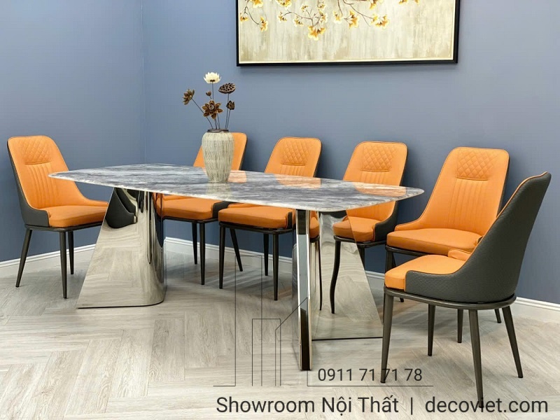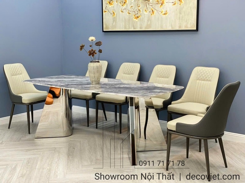 Bộ bàn ăn mặt đá 6 ghế đẹp hiện đại đang là một trong những mẫu bộ bàn ghế phòng ăn được ưa chuộng tại Nội thất DecoViet. Sản phẩm không chỉ có chất lượng bền đẹp mà còn sở hữu thiết kế sang trọng và độc đáo, giúp căn bếp hay phòng ăn nhà bạn sẽ trở nên sang trọng, hiện đại và ấn tượng hơn.