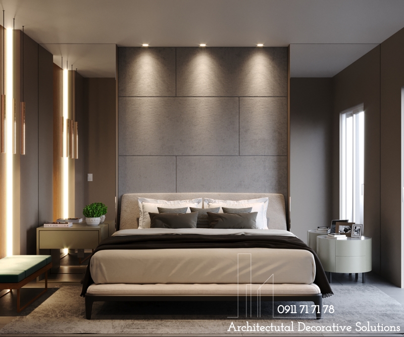 Phòng ngủ là nơi để mọi người nghỉ ngơi, tìm về sau một ngày làm việc mệt mỏi. Nó có ảnh hưởng trực tiếp đến sức khỏe và tinh thần của gia chủ. Do đó, bạn cần một mẫu thiết kế bộ nội thất phòng ngủ hợp lý. Bộ Phòng Ngủ 1065S mang đến sự sang trọng, hiện đại cho không gian phòng ngủ nhà bạn, đảm bảo thẩm mỹ mà vẫn tiện lợi. DecoViet sẽ là địa chỉ tin cậy để giúp bạn thực hiện điều đó. Với những kiến trúc sư nhiều năm kinh nghiệm, đội nũ nhân viên trẻ trung năng động, các mẫu thiết kế phòng ngủ của chúng tôi luôn nhận được đánh giá cao và sự hài lòng của khách hàng.
