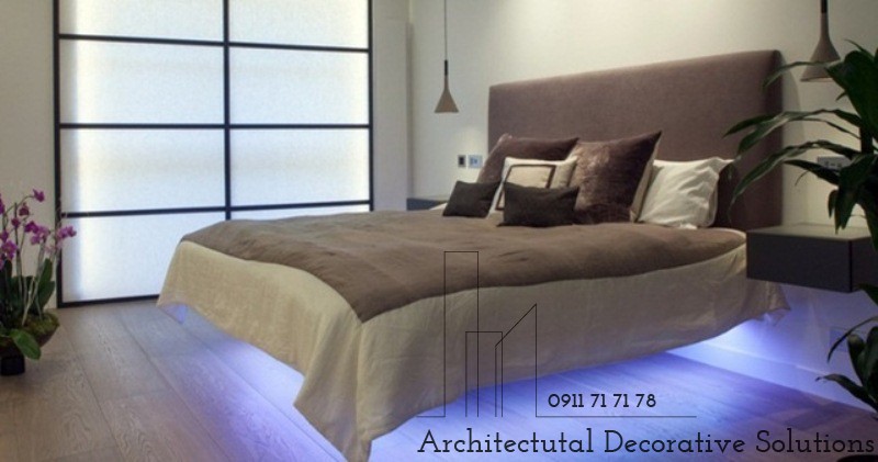 Với đèn led màu đặt phía dưới gầm giường, nét đặc trưng của một một chiếc giường nổi được nhấn mạnh và khiến phòng ngủ trở nên lạ lẫm hơn và lãng mạn hơn.