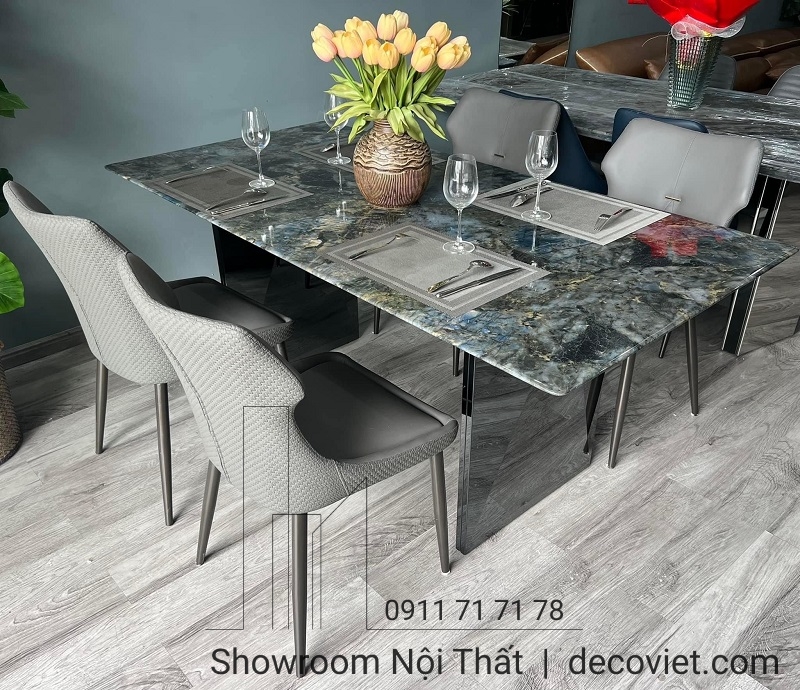 Bộ bàn ăn mặt đá 4 ghế đẹp hiện đại đang là một trong những mẫu bộ bàn ghế phòng ăn được ưa chuộng tại Nội thất DecoViet. Sản phẩm không chỉ có chất lượng bền đẹp mà còn sở hữu thiết kế sang trọng và độc đáo, giúp căn bếp hay phòng ăn nhà bạn sẽ trở nên sang trọng, hiện đại và ấn tượng hơn.