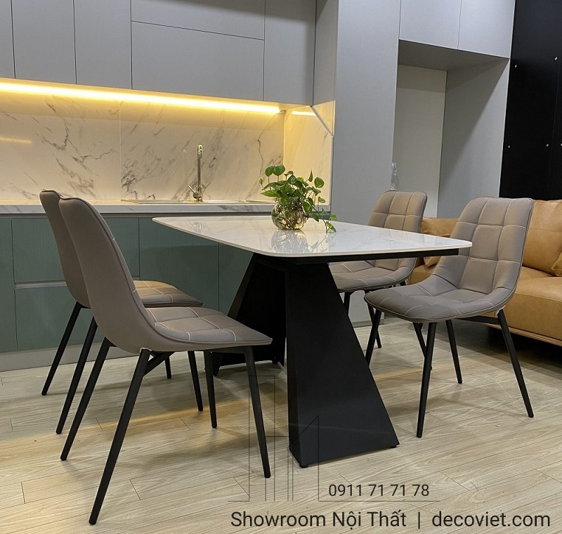 Bàn ăn mặt đá Ceramic hay đá phiến đang được ưa chuộng nhất hiện nay. Sản phẩm này được 100% khách hàng đánh giá là sang trọng, dễ dàng vệ sinh và có giá thành phù hợp. Bàn Ăn Mặt Đá Ceramic 1249S phù hợp với nhiều không gian phòng bếp gia đình vì với vẻ bề ngoài sáng bóng, bề mặt mịn với những vân đá tự nhiên in trên mặt bàn. Cùng DecoViet tìm hiểu kỹ về bộ bàn ăn tuyệt vời này nhé!