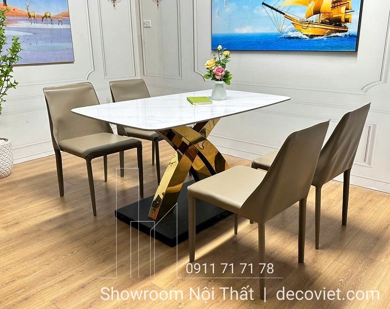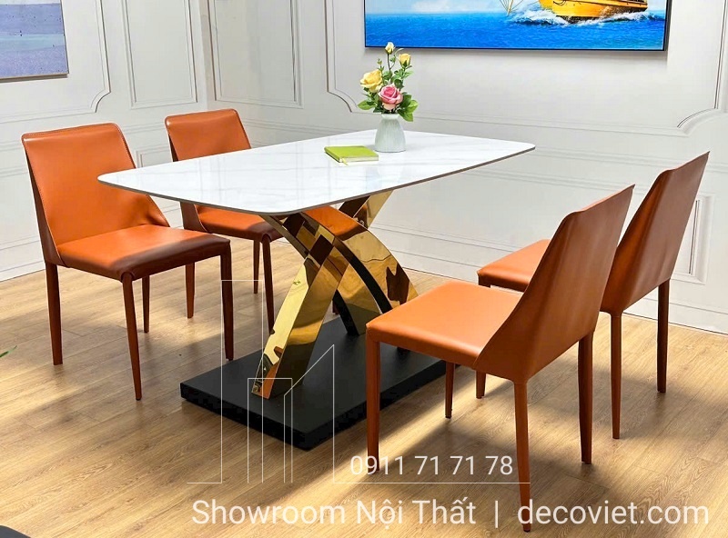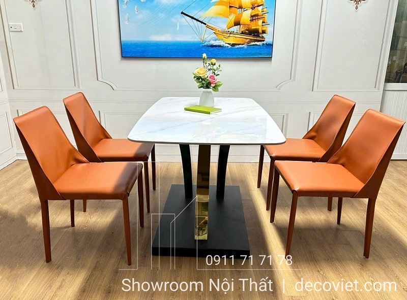 - Bộ bàn ăn 4 người mặt đá tại DecoViet được ưa chuộng bởi phục vụ tốt cho nhu cầu sử dụng của gia đình từ 2 - 6 chỗ ngồi thoải mái. Đây là mẫu bàn ăn phù hợp với đa số căn hộ hiện nay khi diện tích nhà ở ngày càng hạn chế. Bộ bàn ăn 4 ghế với kích thước nhỏ gọn nhưng mặt bàn rộng rãi, bạn hoàn toàn có thể tự tin tổ chức các buổi tiệc tùng ấm cúng.