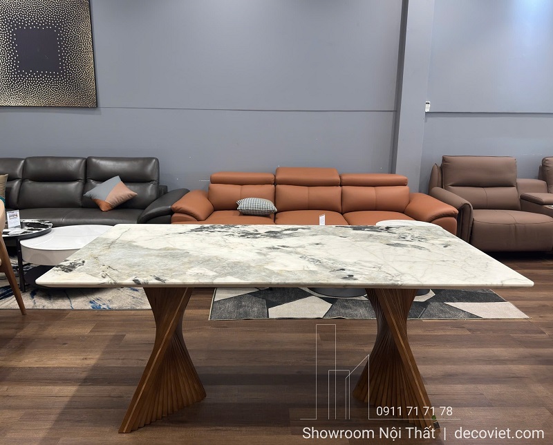 Bàn Ăn 6 Ghế Mặt Đá Chân Gỗ 2610S