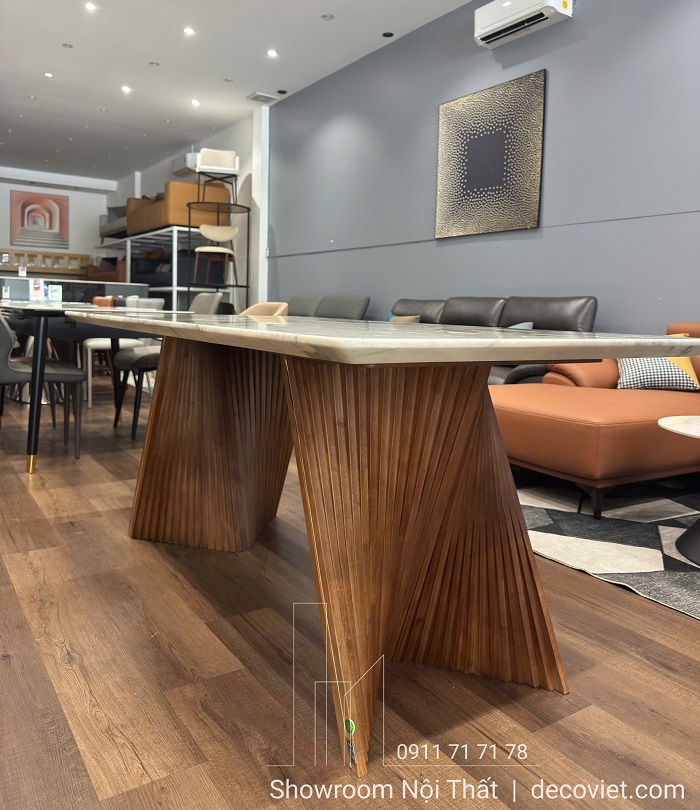 Sự kết hợp giữa chất liệu đá và gỗ hương cao cấp không chỉ mang lại cảm giác sang trọng mà còn dễ dàng kết hợp với nhiều không gian nội thất khác nhau như phòng ăn kiểu Bắc Âu, phong cách hiện đại hay Minimalist.