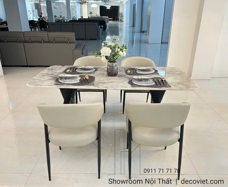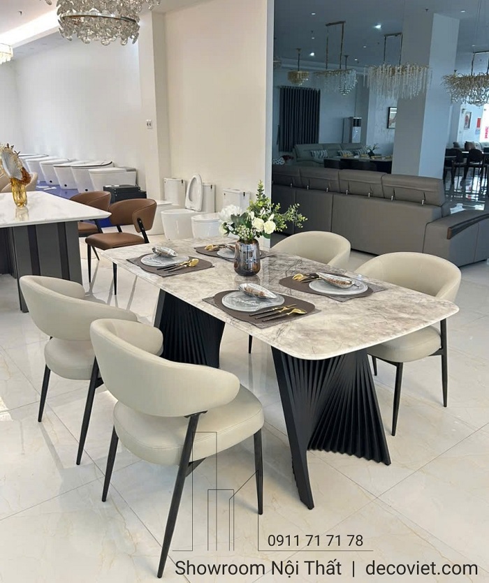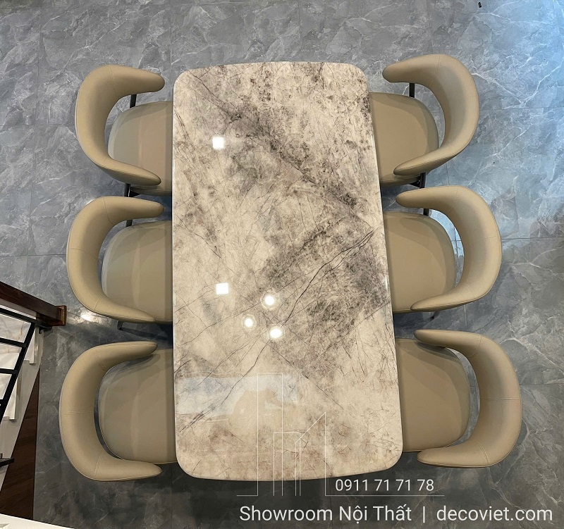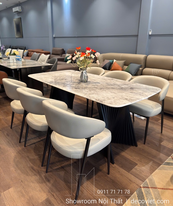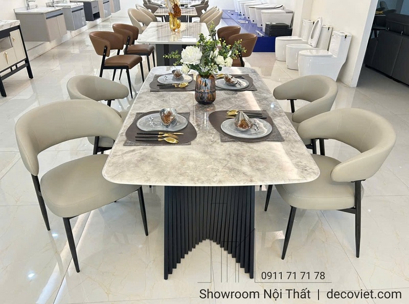 Một không gian phòng bếp tinh tế, hiện đại không thể thiếu đi điểm nhấn là bộ bàn ghế ăn sang trọng, nơi gia đình quây quần và tạo nên những khoảnh khắc đáng nhớ. Bàn Ăn 6 Ghế Mặt Đá Nhập Khẩu 2723S của Nội Thất DecoViet không chỉ gây ấn tượng bởi thiết kế mặt đá cẩm thạch thời thượng mà còn ghi điểm nhờ kết cấu chắc chắn, tông màu thanh lịch và ghế ngồi bọc da cao cấp. Dù đặt trong căn hộ chung cư hay nhà phố, bộ bàn ăn 6 ghế này đều dễ dàng tạo nên sự hài hòa, nâng tầm giá trị không gian sống của bạn.