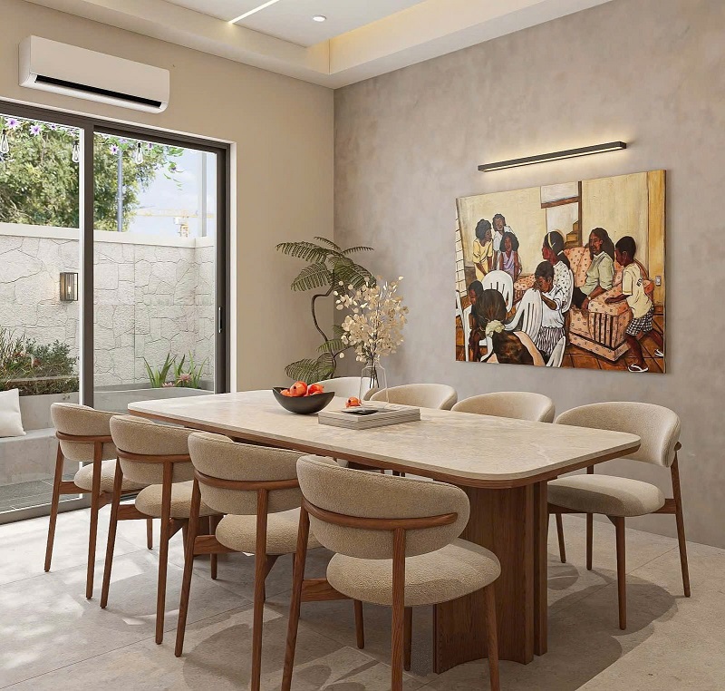 Dù là căn hộ chung cư, nhà phố hay homestay theo phong cách tự nhiên, bộ bàn ăn gỗ 8 ghế cao cấp đều dễ dàng hòa nhập và tạo điểm nhấn nổi bật. Không cần quá nhiều đồ trang trí, chỉ một bình hoa nhỏ, ánh đèn nhẹ và tông tường sáng là đủ để tôn lên vẻ đẹp trầm ấm, gần gũi của bộ bàn ăn này.