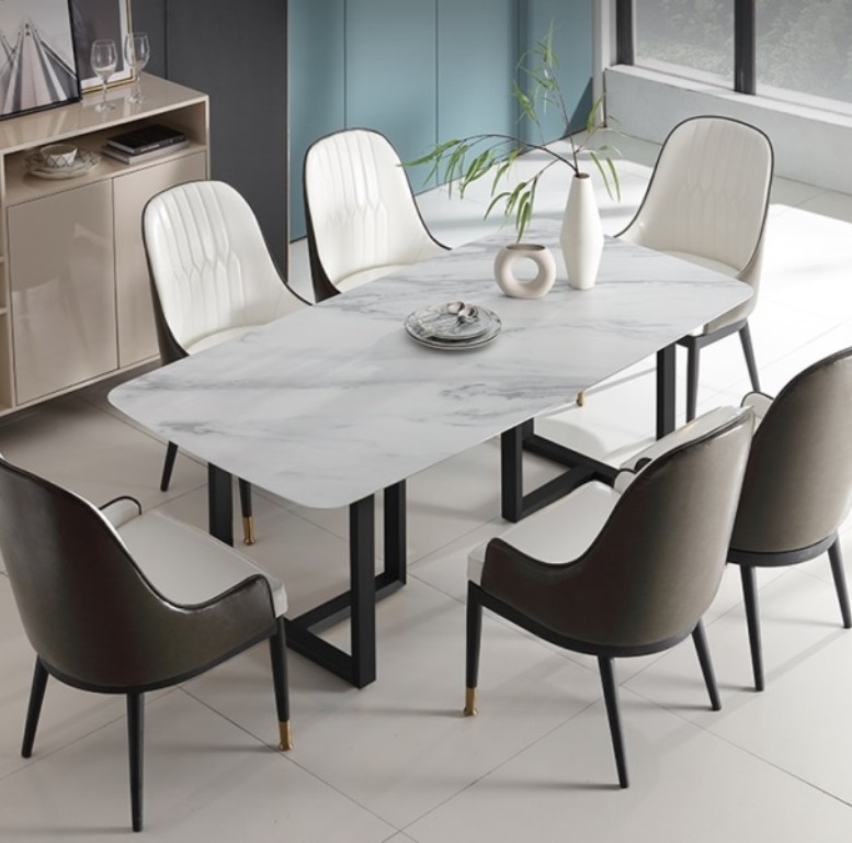 Chất Liệu : chân sắt sơn đen mặt đá trắng vân.