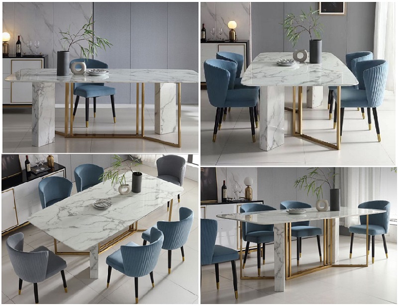 Chất Liệu : bàn chân inox mạ vàng mặt đá PC trắng vân.