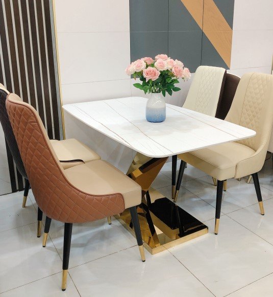 Chất Liệu: Chân inox mạ vàng mặt đá Ceramic trắng.
