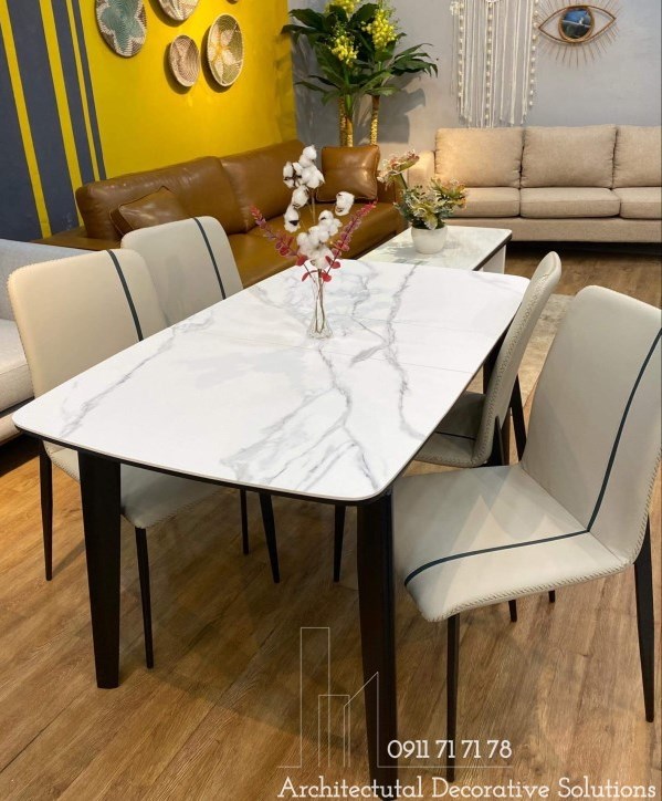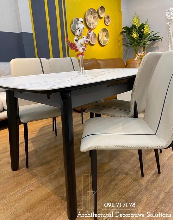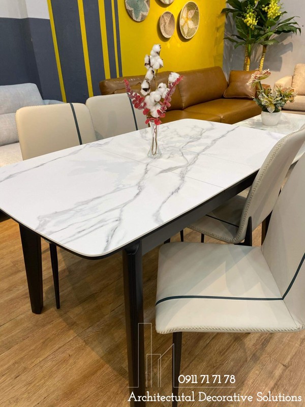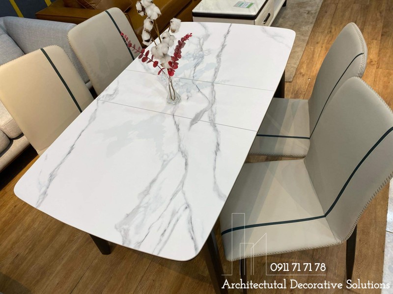 Chất Liệu : Chân gỗ mặt đá Ceramic trắng vân.