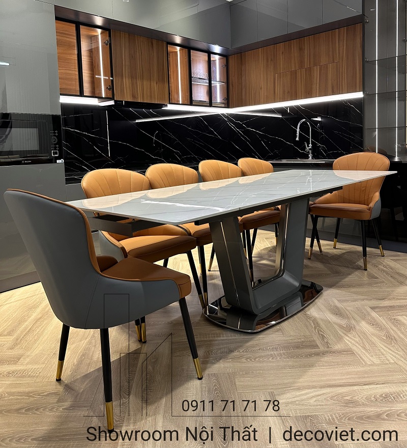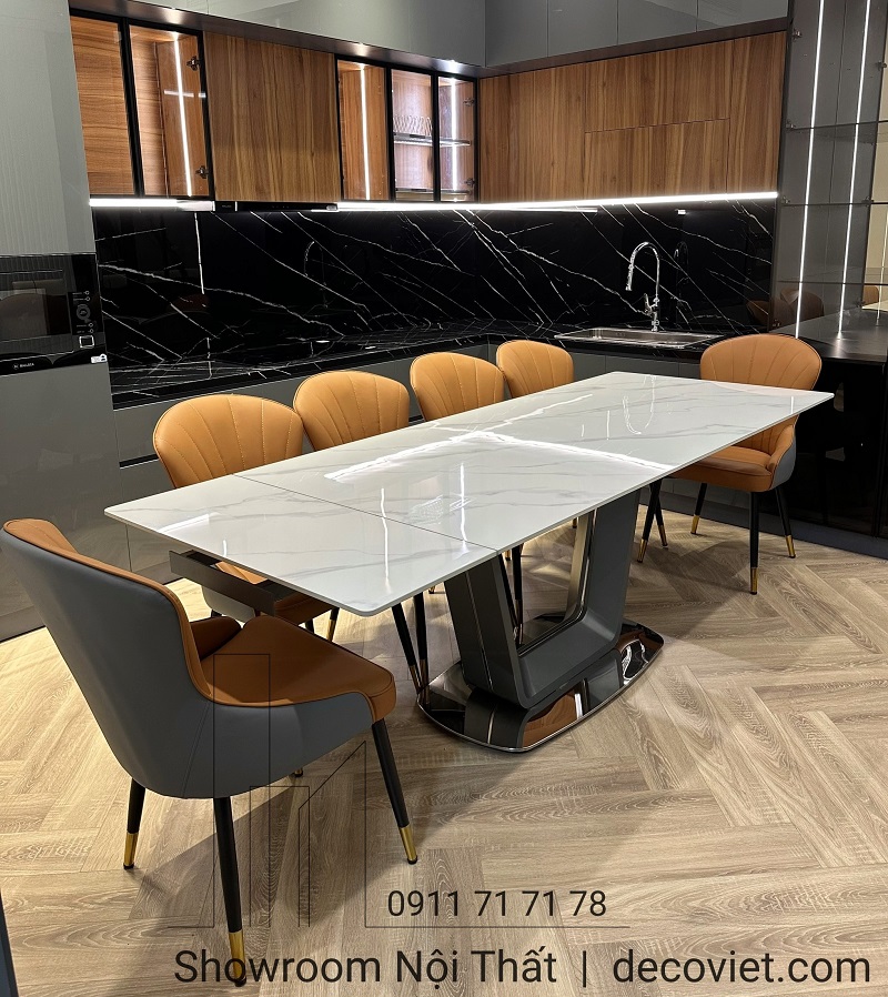 Bàn ghế ăn không chỉ tạo nên không gian phòng bếp đầm ấm, mà còn thể hiện được phong cách riêng của mỗi gia chủ qua việc chọn lựa chất liệu và mẫu thiết kế. Ghé thăm nội thất DecoViet bạn sẽ dễ dàng chọn lựa được cho mình Bàn Ăn Gấp Gọn Thông Minh 10 Ghế 1567S bàn ăn thông minh mặt đá hiện đại phù hợp túi tiền của gia đình mình.