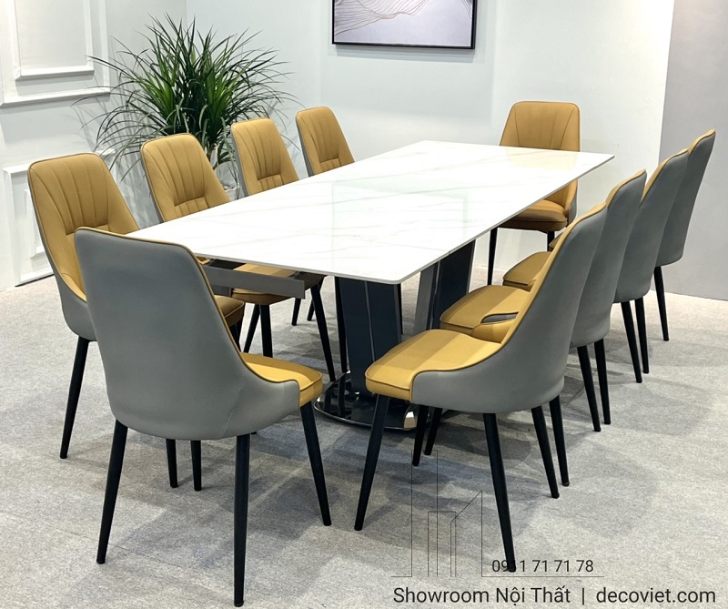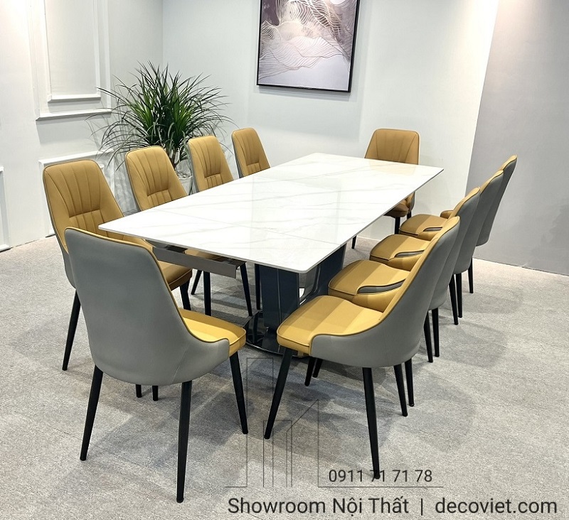 Bàn ăn thông minh mặt đá là một sự kết hợp giữa phong cách thiết kế hiện đại cùng với màu sắc hài hòa, tạo được sự sang trọng, đẳng cấp cho sản phẩm. Bàn ăn thông minh hiện nay đã được cải tiến, với thiết kế linh hoạt, hiện đại hơn, phù hợp với mọi gia đình, xóa bỏ đi suy nghĩ về loại bàn kéo dài có thiết kế đơn giản, không thể hiện được sự đẳng cấp. Bàn Ăn Kéo Dài Mặt Đá 10 Ghế 1123S với kiểu dáng hiện đại và sang trọng kết hợp với vật liệu cao cấp tô điểm cho không gian phòng bếp của bạn thêm phần nổi bật.