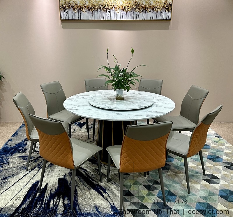 "Chị muốn một bộ bàn ăn có phong cách hiện đại để phù hợp với căn nhà mới, nhưng chị lại sợ những mẫu mã hiện đại thường nhìn hơi lạnh lẽo", đó là bộc bạch của chị khách khi tìm đến Decoviet. Hiểu được tâm tư đó, Decoviet đã mang đến thị trường mẫu Bàn Ăn Mặt Đá Tròn Thông Minh 1036S Nếu thiết kế hình tròn mang đến hoài niệm về những căn bếp Việt xưa, nơi gia đình quây quần bên bữa cơm đầm ấm, thì việc khéo léo sử dụng chất liệu chân sắt và mặt đá cao cấp lại đáp ứng tính ứng dụng trong cuộc sống hiện đại cũng như phù hợp hoàn hảo với xu hướng trang trí nội thất hiện hành.